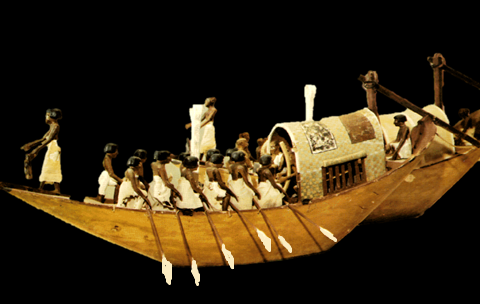 Os enormes barcos em que Faraó viajava requeriam mais de 40 remadores, enquanto as pequenas embarcações só precisavam de 2 ou 3 .